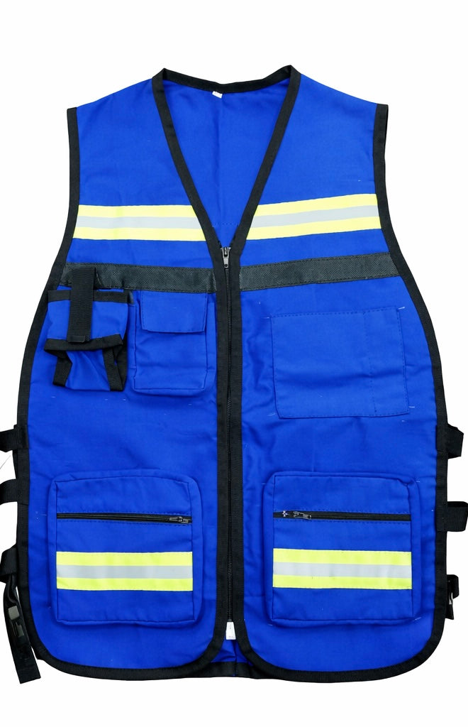 Chaleco fabricado en tela resistente y ligera, ideal para uso diario y jornadas largas. Cuenta con material reflejante para mayor visibilidad y bolsillos funcionales para portar herramientas de trabajo.
